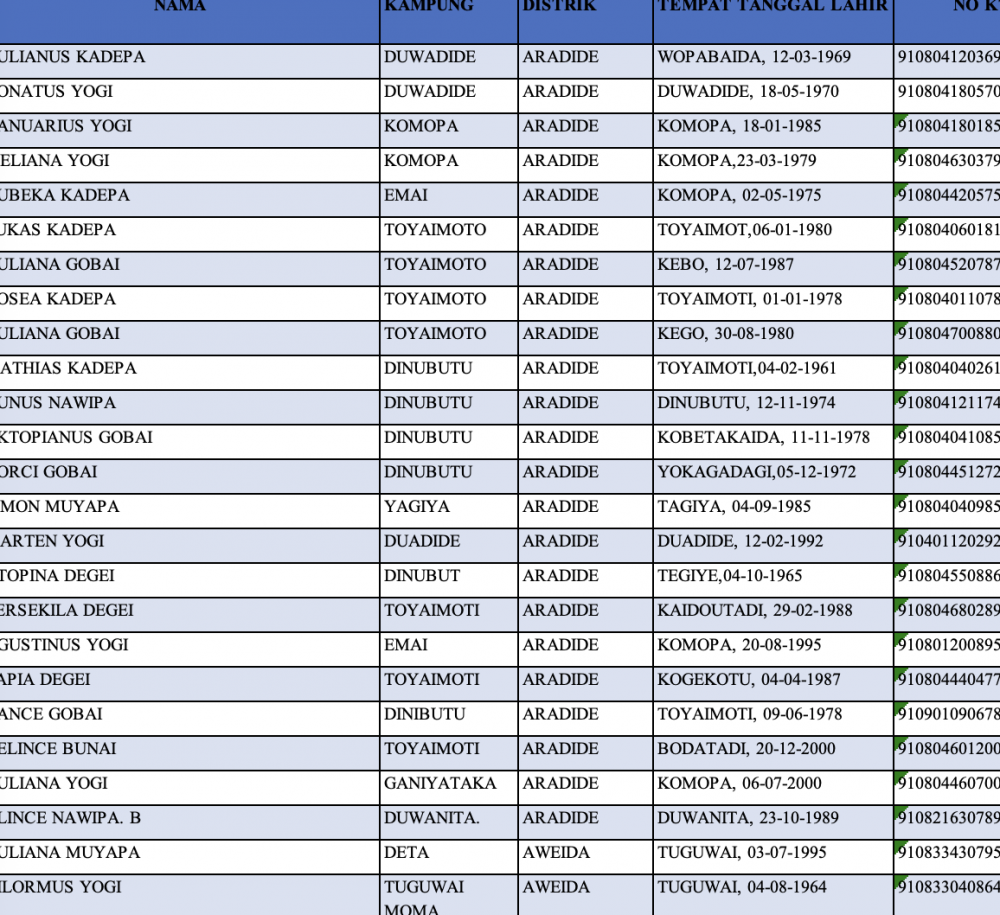 | 829 | AGUSTINUS DEGAI | Insentif Pembudidaya Ikan | TOPIYAI | EKAUWIYA | Lihat Foto | 2025 | 5 Kolam | Rp 1.000.000 | Rp 5.000.000 |